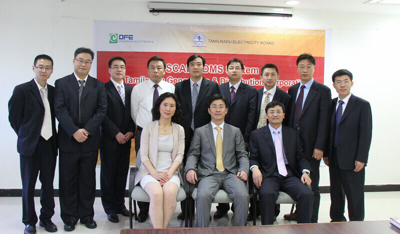2011年11月25日,杨恒坤董事长率领我公司印度配网项目团队核心成员出席了在印度泰米纳度邦电力公司总部举行的配网自动化改造总包项目的签约仪式。本项目任务范围为7个城市的配网自动化改造,项目金额约2亿人民币。印度泰米纳度邦配网公司总裁Mr. Rajeer Ranjan先生、总工Mr V.G..Mannoharan先生等领导及相关的项目人员、技术人员和印度国家电力融资委员会特派专家出席了签字仪式。