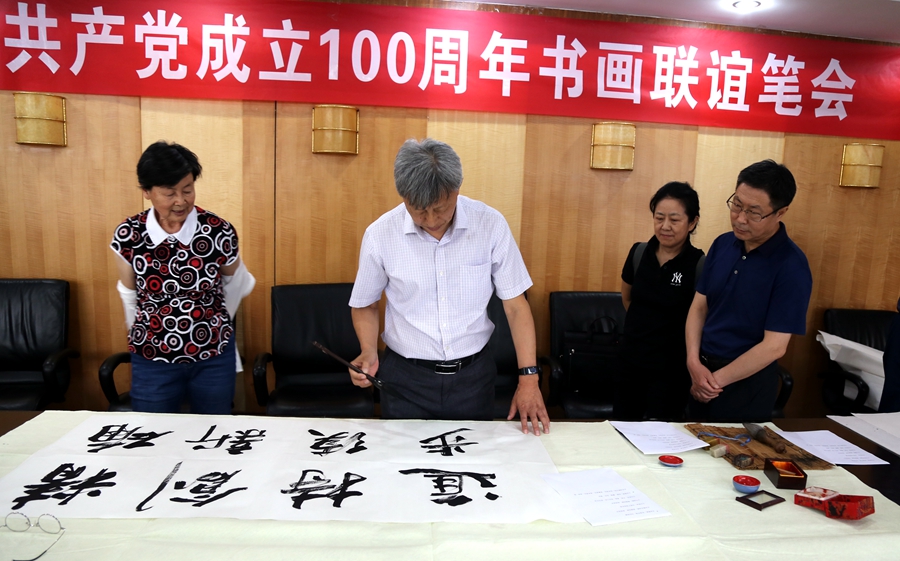 为庆祝中国共产党成立100周年,回顾党的奋斗历程,歌颂美好新时代,助力公司企业文化建设。6月24日,苏州永鼎典当有限公司、烟台市老年书画研究会、烟台市老干部志愿者协会共同举办“庆祝中国共产党成立100周年联谊书画笔会”。本次活动共有18位县处级退休老干部书画家参加。